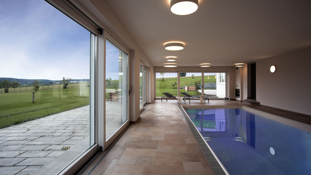 Die Terrassentür wird auf kleinen Rollen entlang einer thermisch getrennten Aluminium-Bodenschwelle zur Seite geschoben und lässt sich neben der Türöffnung abstellen. Somit ragt kein störender Türflügel in den Wohnraum. Der schwellenlose Durchgang auf die Terrasse oder den Balkon erweckt den Eindruck, als würden drinnen und draußen miteinander verschmelzen. Gönnen Sie sich diese Freiräume!